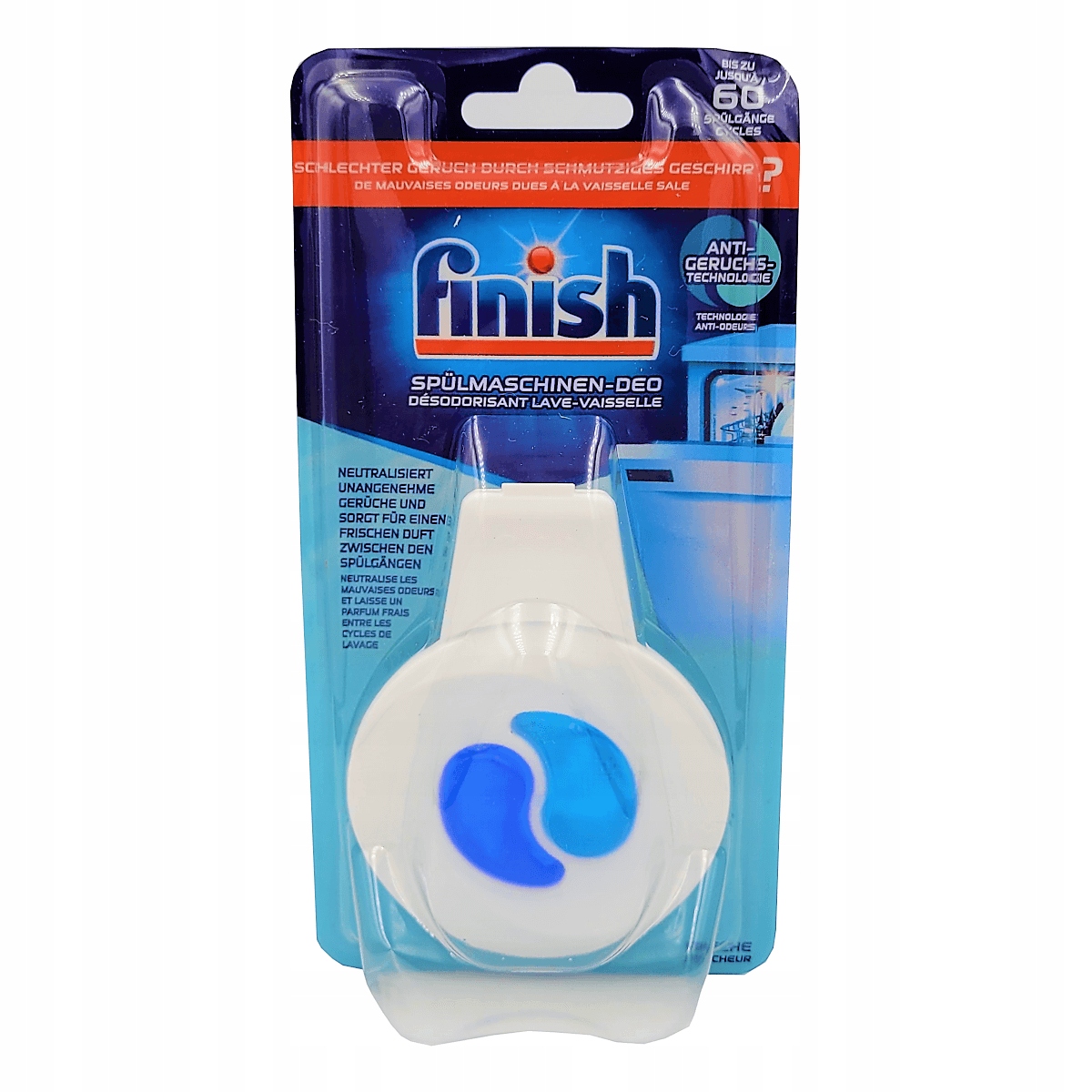 Finish Spulmachinen - Deo Frische Fraicheur — це німецький аромат для посудомийної машини зі свіжим ароматом. Його вистачає до 60 днів. Для використання помістіть у задню частину верхнього кошика або помістіть у кошик для столових приборів. Володіє доглядаючими властивостями.