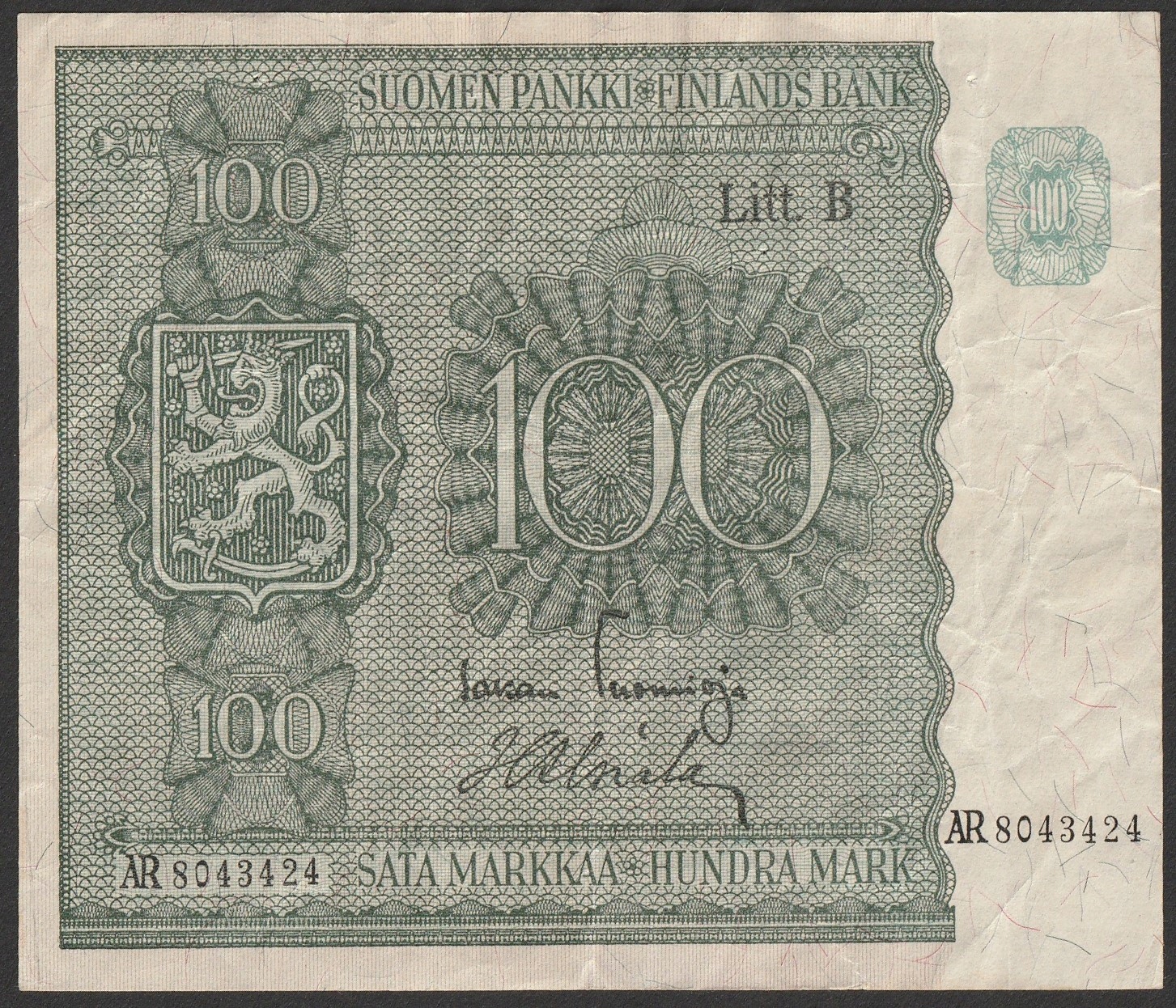 Фінляндія 100 марок / марок 1945 - AR