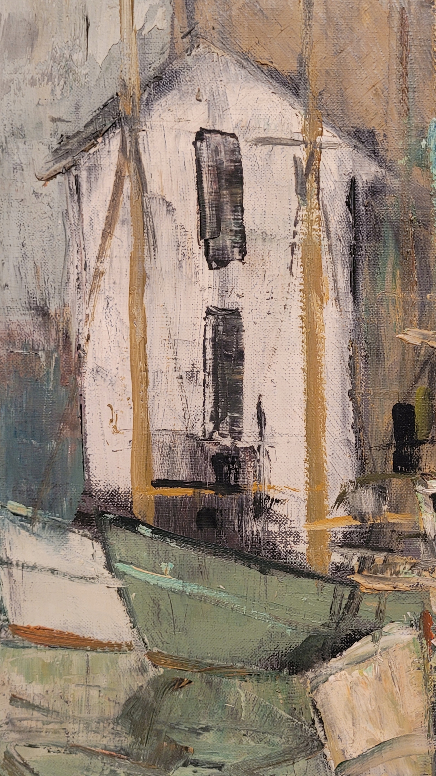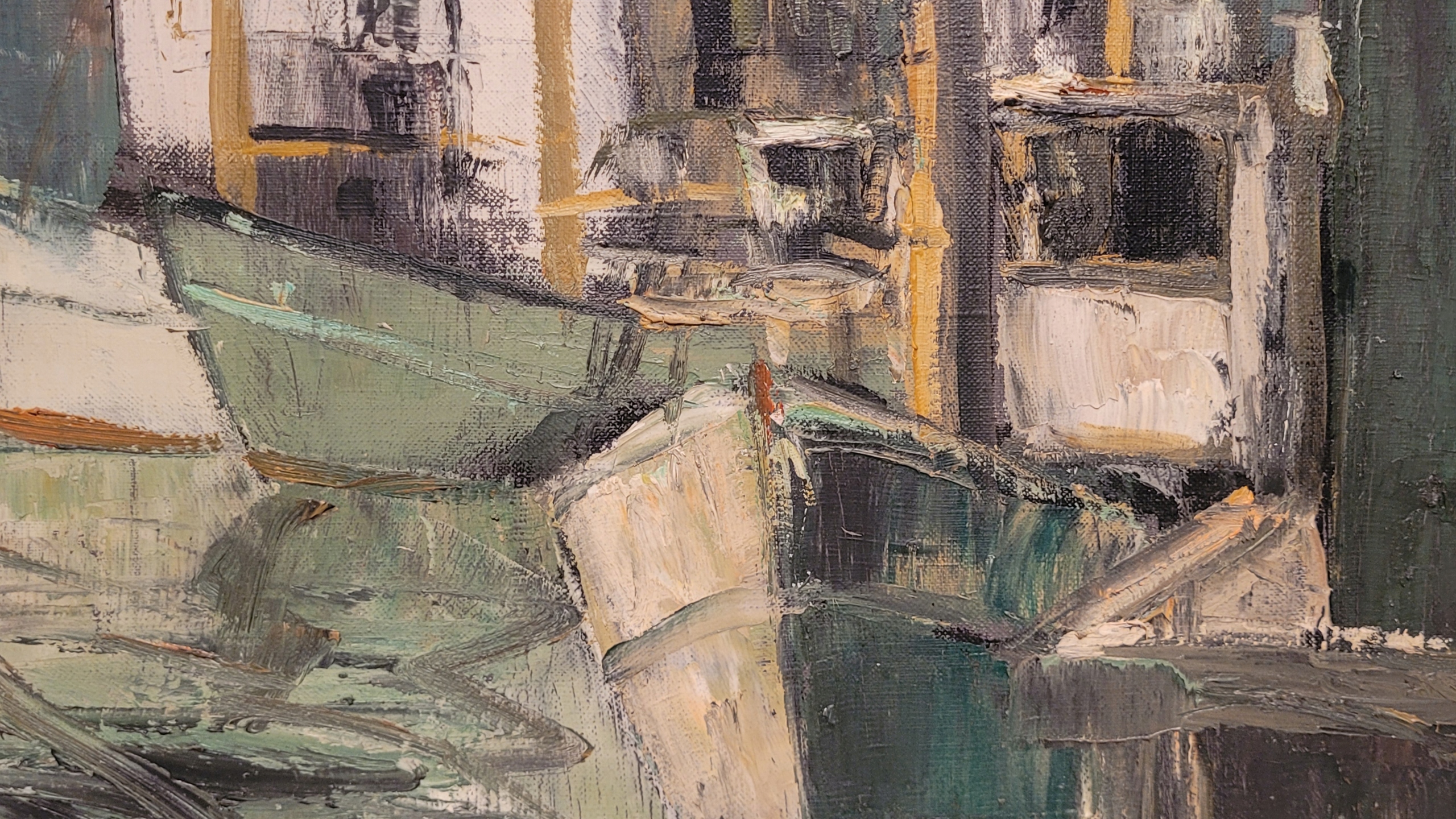 Предметом продажу є красива стара картина маслом "ЧОВНИ В ПОРТУ".