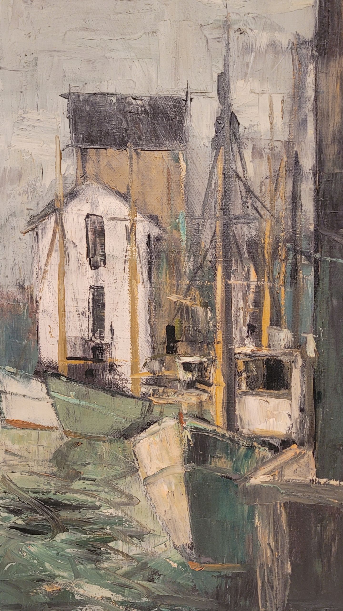 ФІНН АНДЕРСЕН (1909 - 1987) - "ЧОВНИ В ПОРТУ", красива картина маслом