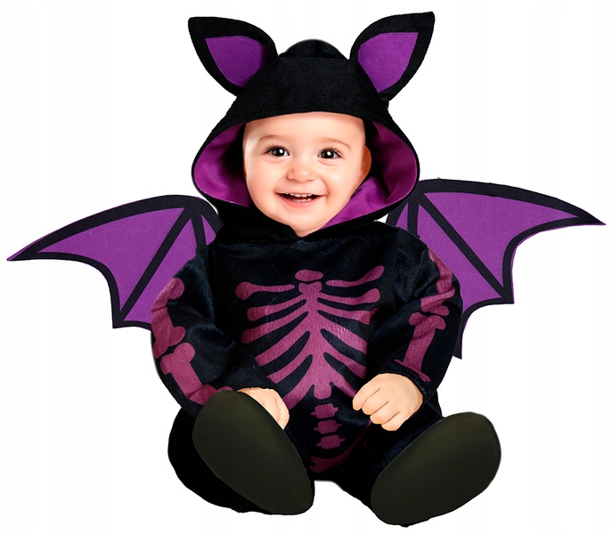 - Чорний комбінезон із привабливий принт фіолетового скелета - створює інтригуючий, але доброзичливий вигляд маленького кажана.