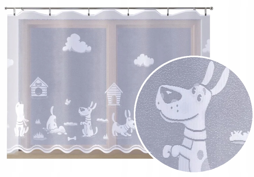 Фіранка дитяча жаккардова чарівна СОБАКИ СОБАЧА біла 200х150 СТРІЧКА