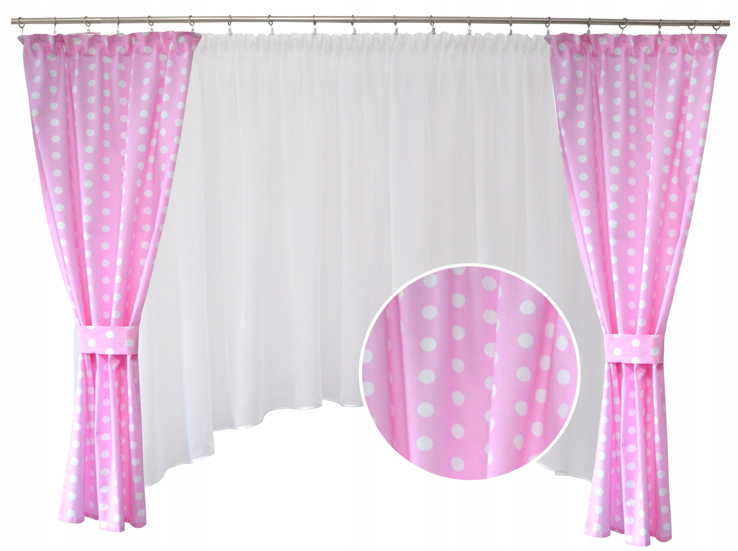 Фіранка дитяча та штори КОМПЛЕКТ рожеві горошини кімната дівчинки BOHO