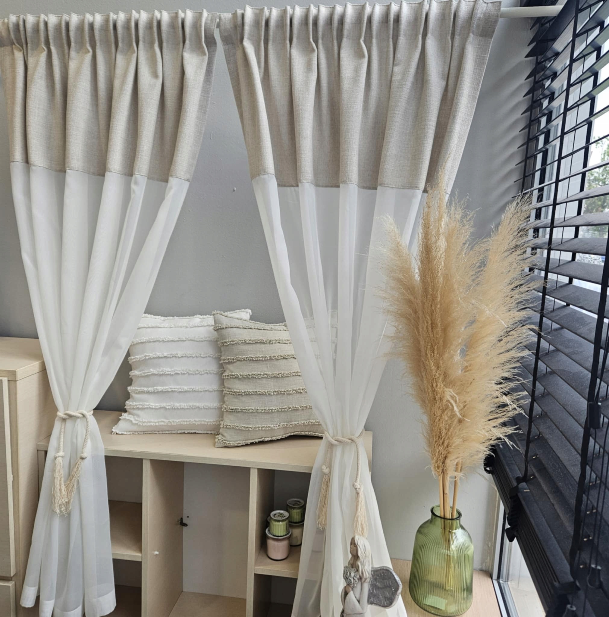 Фіранка льон, бохо, сметана, бежевий, екрю шир. 320 см вис. 160 см