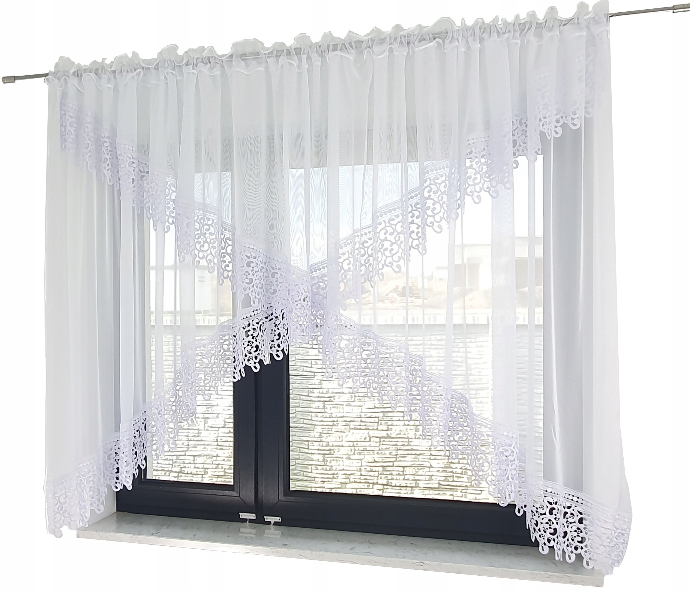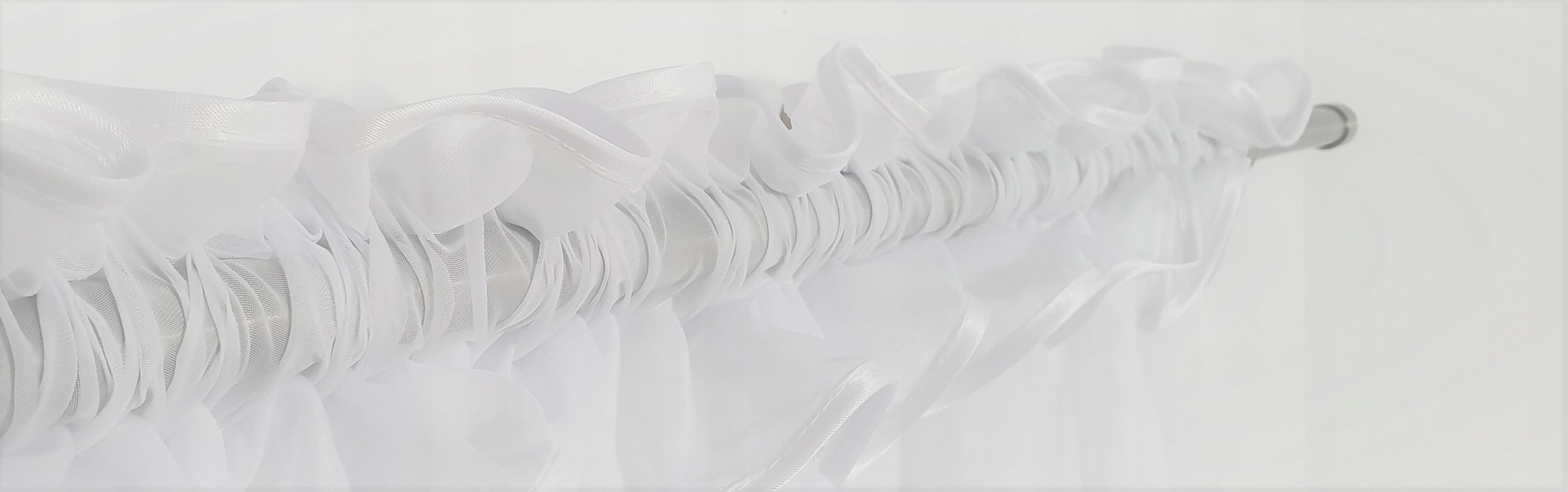 Штора виконана з гладкої вуалі, обробленої красивим гіпюром. У верхній частині штори вшита м'яча стрічка з тунелем, що дозволяє м'яти штору і ідеально підходити до ширини карниза. Цю штору можна повісити на гачки або на трубчастий карниз (TUNEL). Штора до зморшку має ширину 400 см.