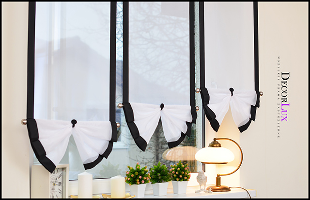 Оригінальні білі вентилятори з чорною окантовкою ідеально підходять для сучасних інтер’єрів, ретельно виготовлені з тканини високої якості – також доступна окантовка інших кольорів. Спосіб підвішування - тунель або жаби Ціна вказана за 1 шт. Розміри на фото: ширина 50 см, висота 130 см, ширина 50 см, висота 120 см, ширина 50 см, висота 110 см. Ви можете створювати гарні композиції з різної кількості деталей різного розміру та різної конфігурації. ПРИМІТКА: металеві ребра жорсткості є фотоекспонатами, виготовляємо за додаткову плату. Відвідайте інші наші аукціони.