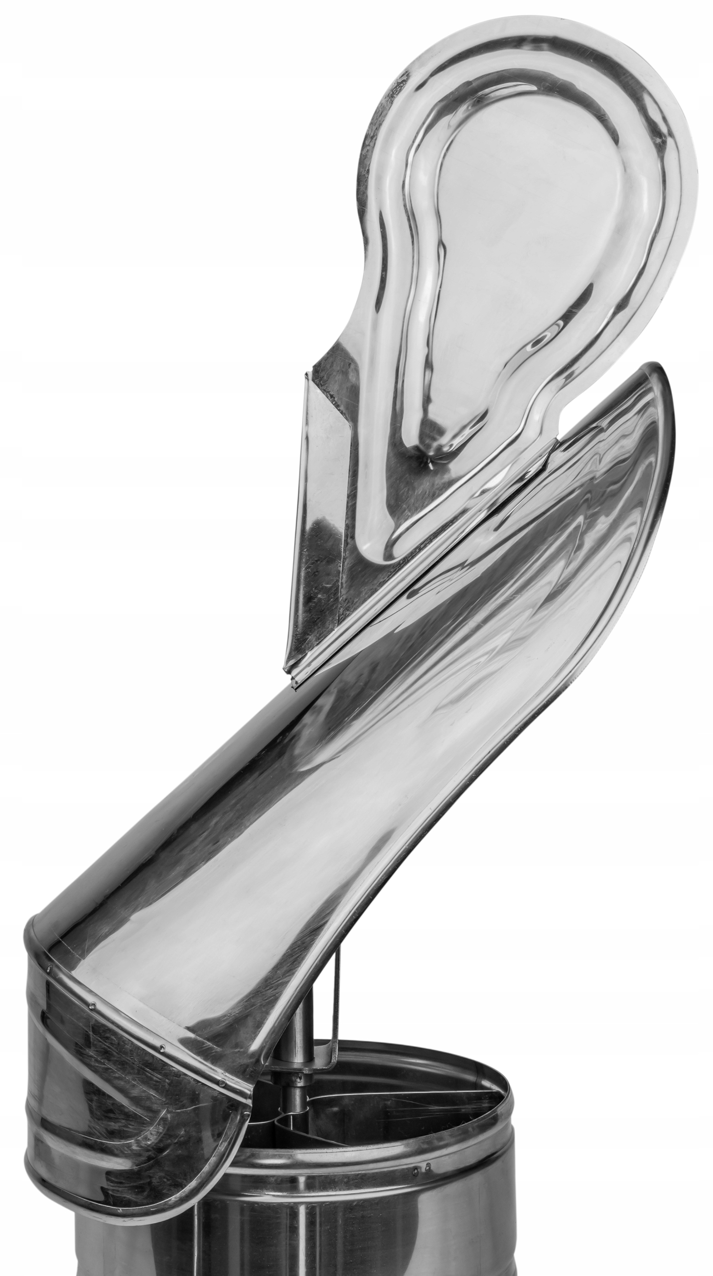 Само -виховування демчики Dimney пожежник -це пристрій, динамічно використовуючи силу вітру для підтримки проекту димоходу. Незалежно від напрямку, сили та типу вітру, коренева трубка Hin розміщується на протилежній стороні до напрямку дме вітру. Він використовується для монтажу на торгових точках з гравітаційним (вентиляцією), димом та димом. Режим печі також сприяє цьому - вмикання та вимкнення, тобто нагрівання та охолодження димоходу. Це спричиняє конденсацію водяної пари на стінах димоходу та розетків димоходу (залежно від того, де будуть найкращі умови). Конденсат - це вода, що містить сполуки, що містять сірку, які агресивні до сталі. Це іноді спричиняє корозію навіть сталі з хромом.