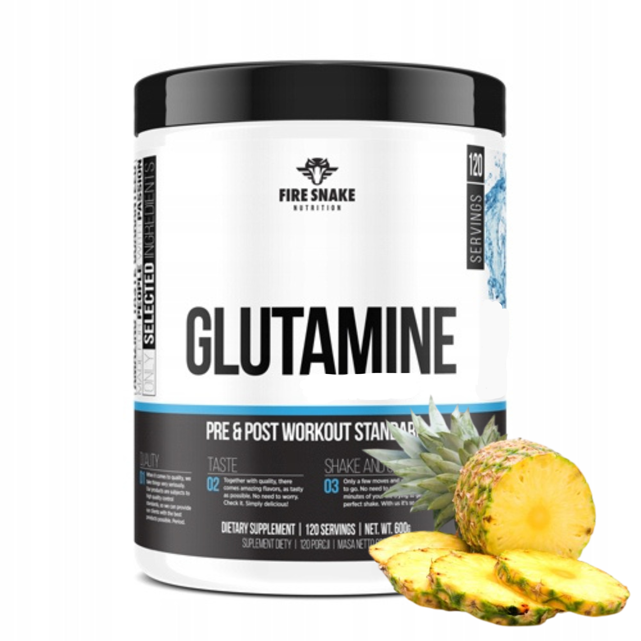 FireSnake ГЛЮТАМІН 600г L-ГЛЮТАМІН + ВІТАМІН В Регенерація Ананас
