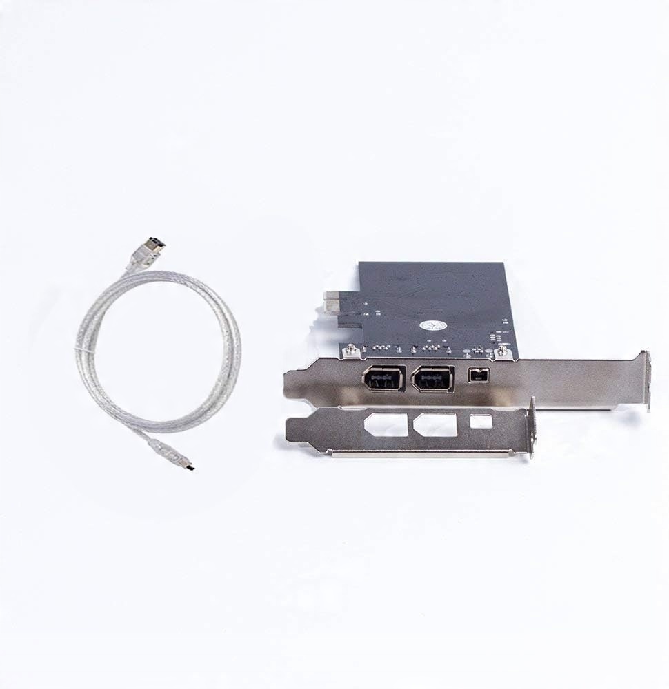 PCIE CARD IEEE 1394 Firewire. Запишіть відео DV HDV HD з камери на настільний комп'ютер. З низькою ручкою та кабелем Firewire, найкращою карткою Firewire для вашого комп’ютера. Через систему, сумісну з PCI-Express Revision 1.0A та IEEE 1394 OpenHCI V1.0 та V1.1. Ніяких комп'ютерних драйверів, підключення та відтворення не потрібно. Підтримує Windows 98SE/ME/2000/XP/SERVER 2003/VISTA/7 32 BITY/64 BITY/WIN8/WIN10. Не сумісний з HP та Dell.