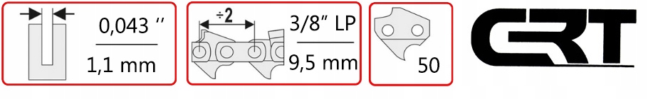 Працює з напрямною з робочою довжиною 35 см [14"] 50 напрямних ланок, 3/8" крок і ширина канавки 1,1 мм, використовується в пилці: