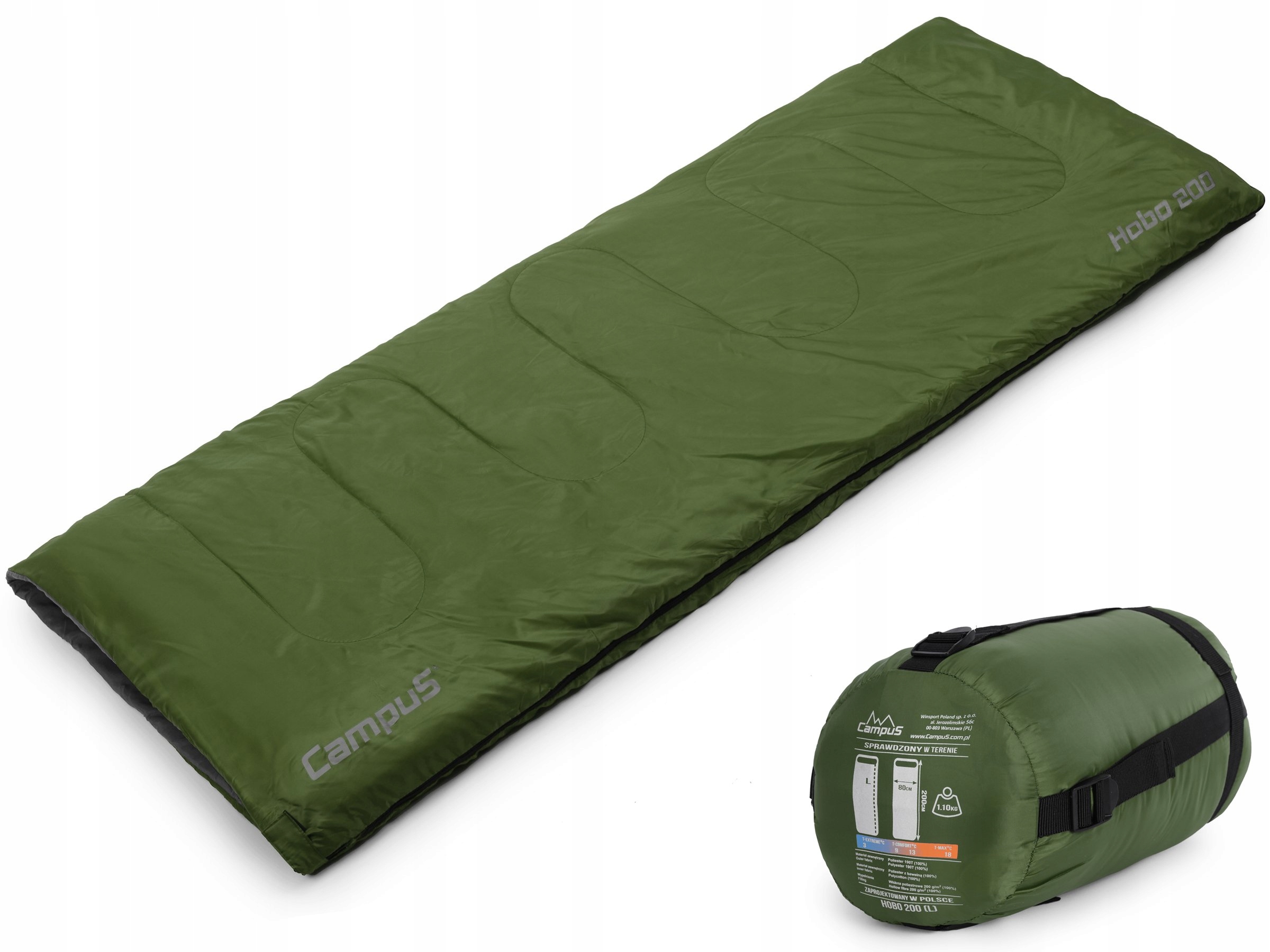 Гарний фірмовий спальний мішок типу ковдри від відомої компанії Campus. Модель HOBO 200 призначена для людей, які хочуть мати брендовий товар за доступною ціною. Він характеризується хорошими властивостями, якістю виготовлення та запатентованими технологіями, такими як структура наповнення: HOLLOWFIBER. Вага наповнювача 200 г/м2. Після упаковки спальник залишається маленьким (висота 36 х 18 см). Призначений переважно для використання у весняно-літній та ранньоосінній сезони. Спальний мішок можна підключити. Спальний мішок можна повністю розстібнути (збоку і знизу) і перетворити в звичайну ковдру для двох осіб. Практичний чохол також має компресійні ремені.