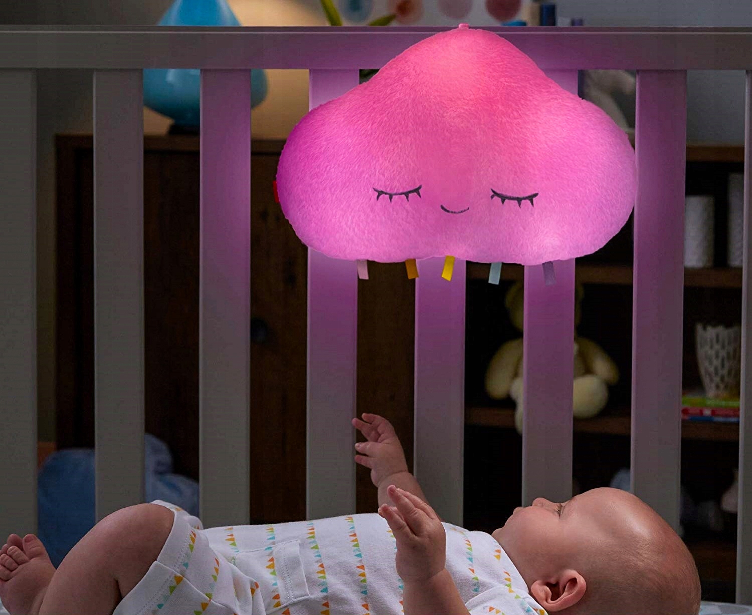 Хмару можна легко прикріпити до більшості дитячих ліжечок, а тиха музика та звукові ефекти зі спеціального списку відтворення Ready, Settle, Sleep™ синхронізуються зі світловим шоу, щоб створити затишну атмосферу для гарного нічного сну.