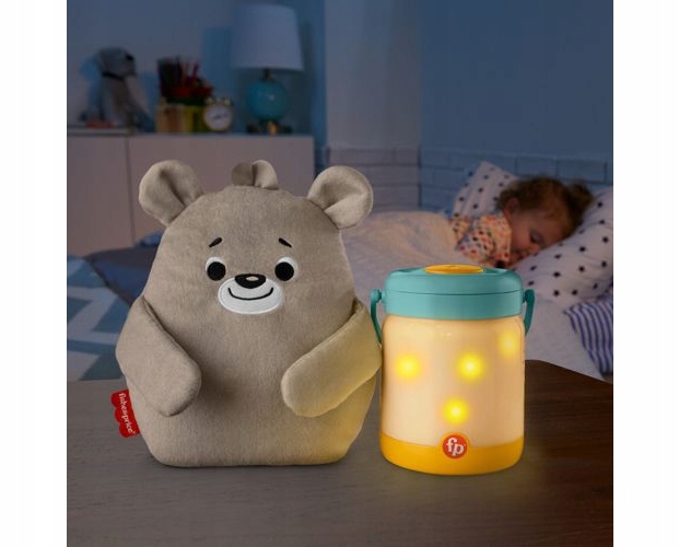 Ведмедик Fisher-Price® Teddy Bear with Fireflies — це чарівна дитяча іграшка для сну для шафи з музикою, підсвічуванням і світловою проекцією, яка допоможе малюкові заспокоїтися та заснути. У міру того, як ваша дитина росте, м’якого плюшевого ведмедика можна від’єднати від пристрою та перетворити на милу м’яку тваринку, а портативний ліхтар забезпечить вашу дитину світлом, яке змусить її почуватися в безпеці вночі. Не хвилюйся, Ведмедику, світлячки покажуть нам дорогу!