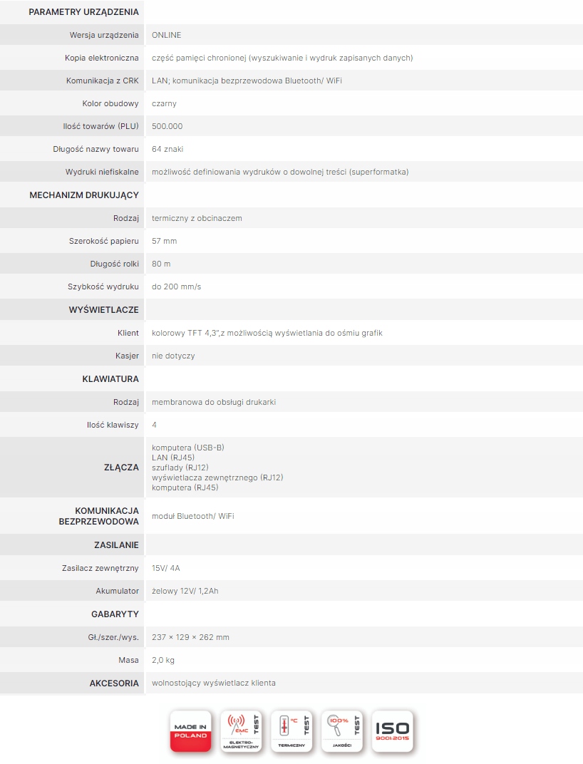 - Кольоровий TFT-дисплей 4,3" з регульованим положенням , з можливістю відображення до восьми графічних зображень (логотип аптеки, реклама), повідомлень або поточної дати та часу