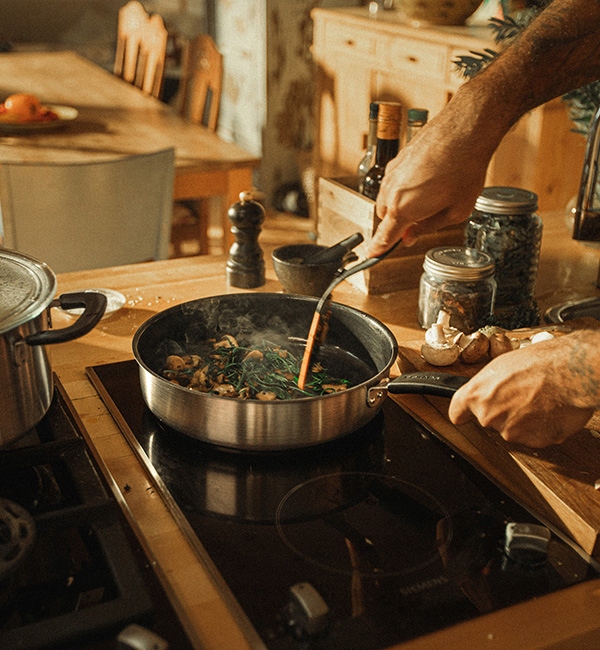 - The chef's pan is perfect for both everyday and occasional cooking, has a flat base and higher sides, which are ideal for frying, stewing and single-pot dishes