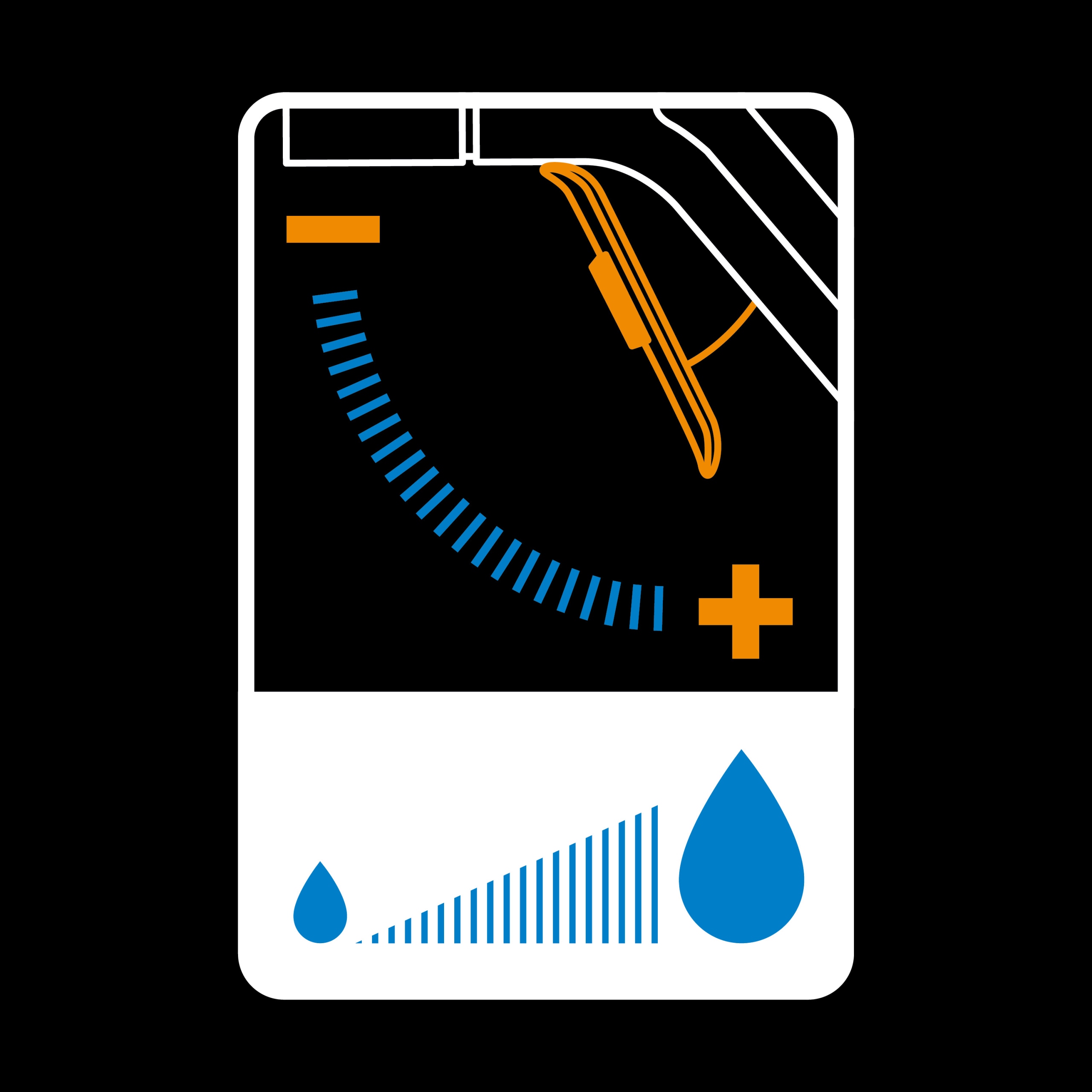 Плавне обертання дає змогу регулювати струмінь розпилювача головки: точкове, дрібний дощ або розбризкування, а передній тригер відкривання/закривання можна блокувати або плавно регулювати.
