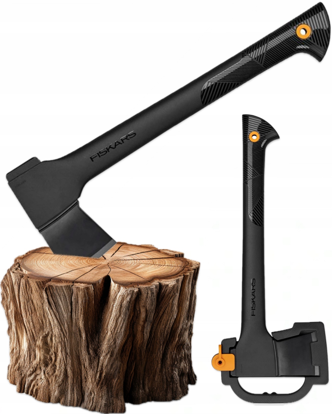 - universal fiskars 44.5 cm (total length with cover: 49 cm) for processing pieces of wood to the fireplace, furnace, grill or bonfire, is also suitable for carpentry, construction and chopping