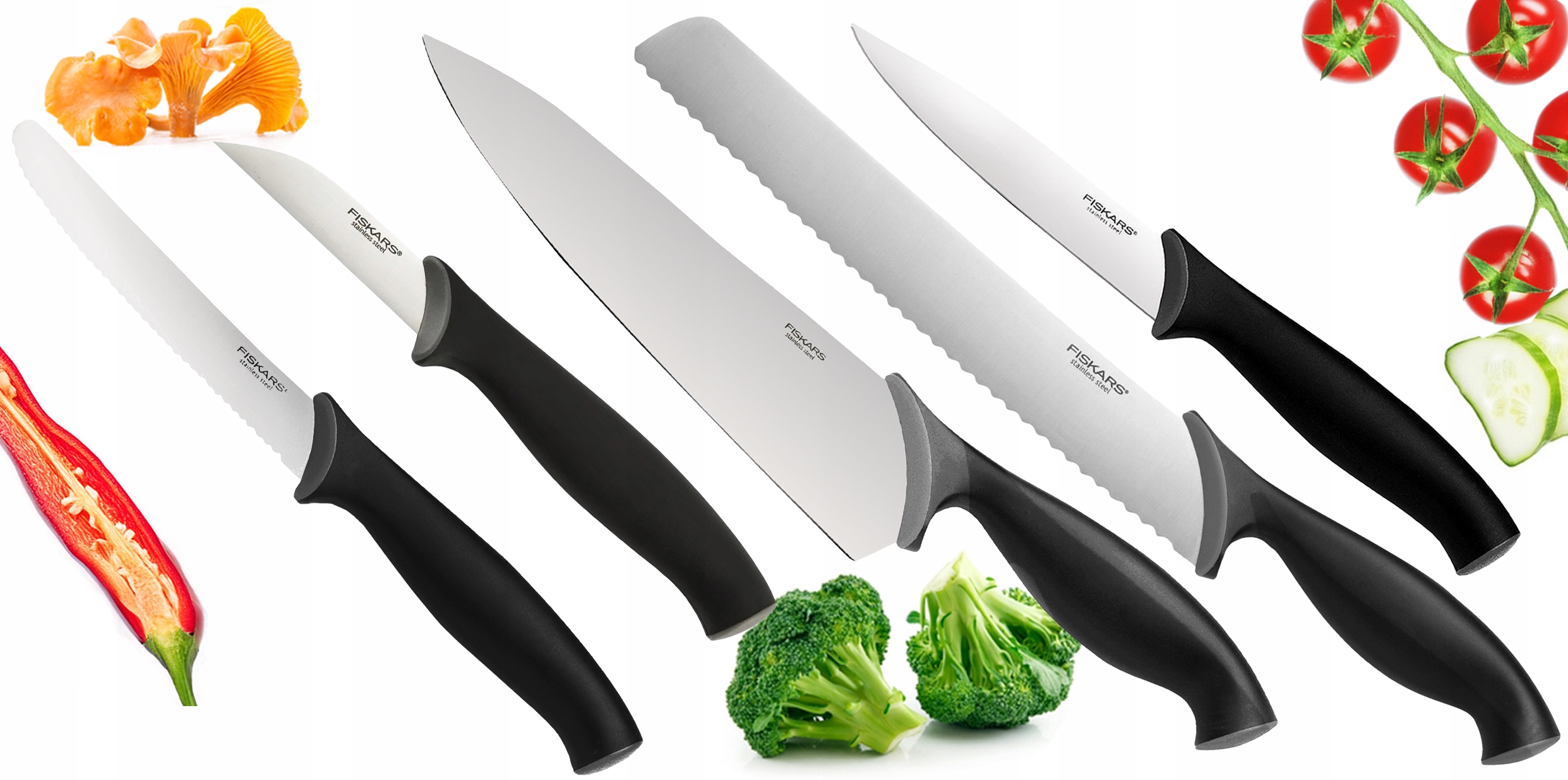 FISKARS НАБІР 5 КУХОННИХ НОЖІВ ХЛІБ ОЧИЩЕННЯ ПОМІДОРОВ CHEF