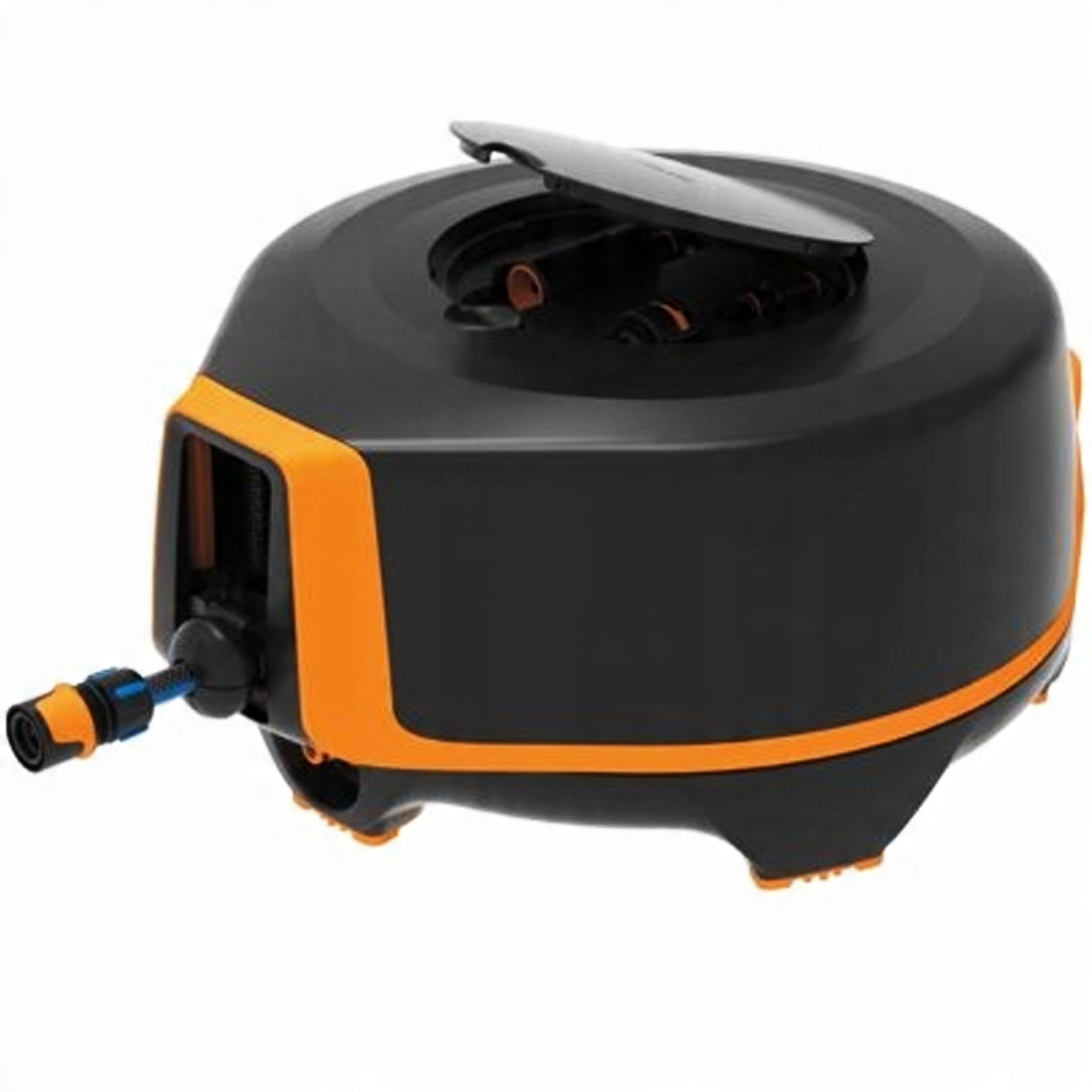 - Автоматична котушка для шланга XL готова до використання лише за кілька секунд після того, як ви дістанете її з коробки - усі необхідні компоненти входять до котушки та готові до негайної роботи використовувати. Можливість розмістити барабан у вибраному місці в саду та його обертання на 360° дозволяють вільно поливати будь-який куточок. Це також подвоює площу поливу порівняно з традиційними настінними котушками.