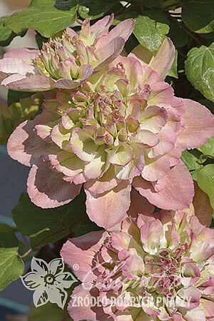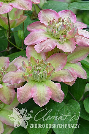 Як це виглядає: середні квіти, Avg. 10-13 см. Квіти, що з’являються навесні, побудовані з 8 ділянок та 30-60 чагарників-внутрішні ділянки, блідо-рожевий з кремово-зеленим знебарвленням та вершинами рожевого кольору, місцями, менш сонячно, більше зеленими, еліптичними, злегка хвилястими. Повні квіти з’являються на минулорічних пагонах та одиночні на нових літніх ростом. V-VI та IX знову цвіте, але слабкіші. Світло -зелені, самотні, сердечні або складні листя. Молоді фіолетові зростання, коли вони збільшуються, зелений.