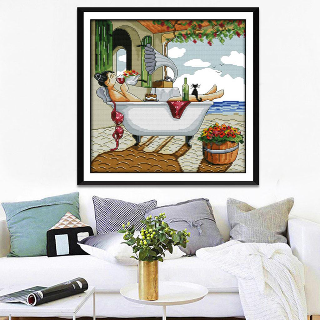 DIY, штампований, насолоджуючись життям (купанням за морем) для хрестової вишивки, легко дотримуватися інструкцій.