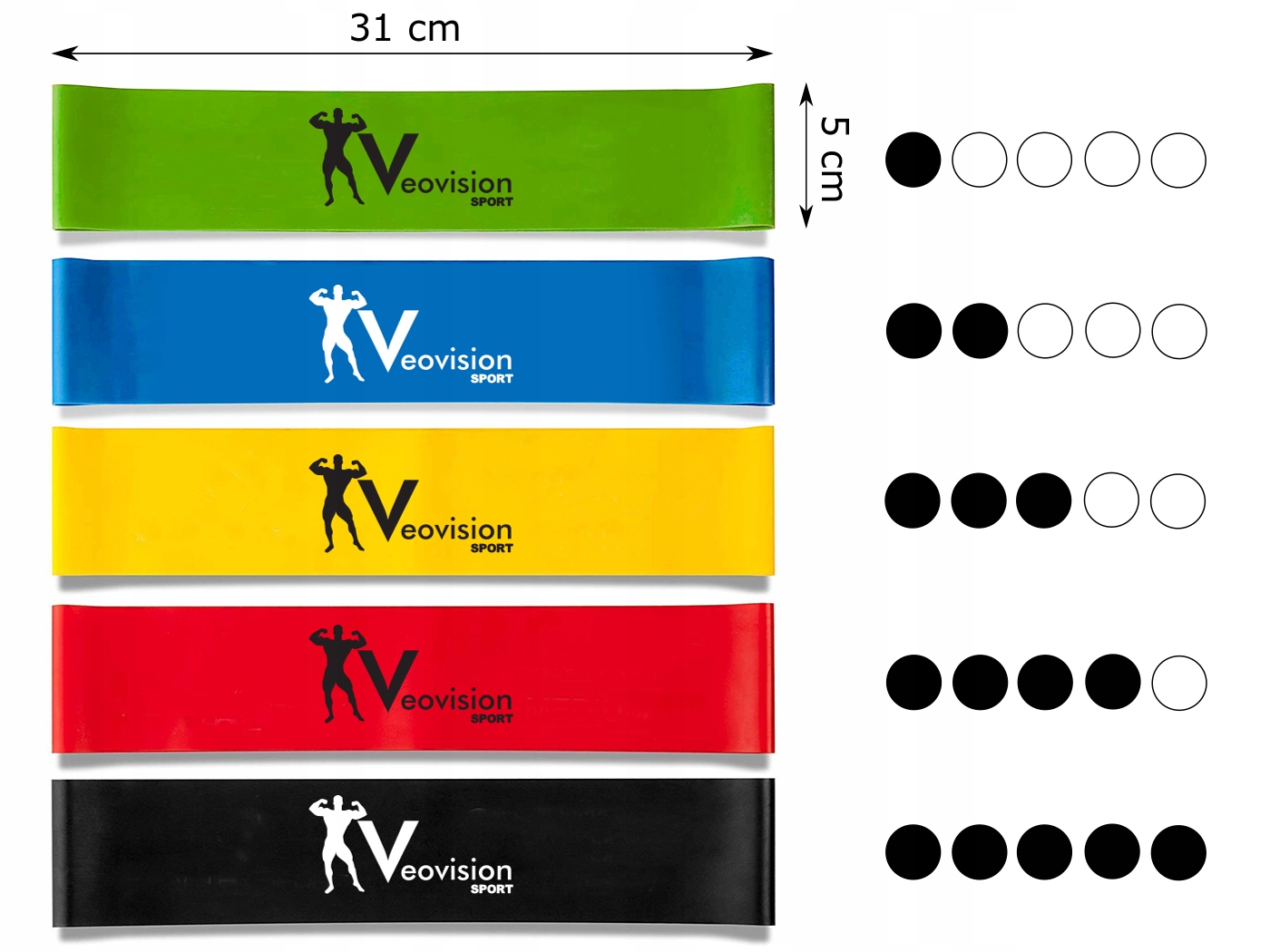 ФІТНЕС-СТРІЧКА ДЛЯ ТРЕНУВАЛЬНИХ ВПРАВ, КОМПЛЕКТ З 5 КОМПЛЕКТІВ