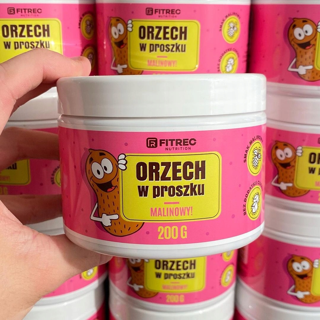 Це продукт, який сподобається кожному любителю арахісового масла та малини! Назва "Nut Powder" означає порошок знежиреного арахісового масла. Але як щодо порошку? Наш продукт був створений шляхом зменшення олії зі смажених горіхів, їх подрібнення та додавання таких інгредієнтів, як ліофілізований порошок малини, сукралоза та сіль. Це лише 4 інгредієнти! Смак і запах малини походить від справжньої ліофілізованої малини - ми не додавали в наш продукт штучних барвників, ароматизаторів, цукру чи олії. Злегка рожевий колір порошку завдяки малині Ідеально підібрані пропорції дозволили отримати чудовий смак і консистенцію, дуже схожу на звичайне арахісове масло! FITREC Raspberry Peanut Powder - відкрийте для себе новий вимір порошку арахісового масла! FITREC арахісовий порошок малина 200 г містить на 70% менше жиру, ніж звичайне арахісове масло, на 30% менше калорій і майже 50 г білка на 100г