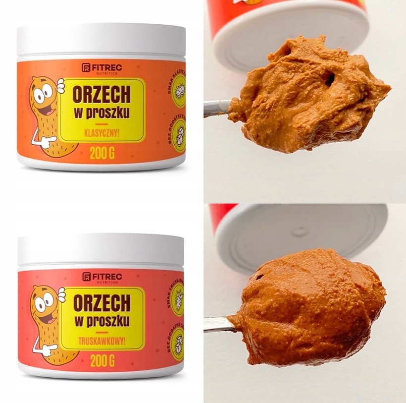 Це продукт, який сподобається кожному любителю арахісового масла та полуниці! Назва "Nut Powder" означає порошок знежиреного арахісового масла. Але як щодо порошку? Наш продукт був створений шляхом зменшення олії зі смажених горіхів, їх подрібнення та додавання таких інгредієнтів, як ліофілізований полуничний порошок, сукралоза та сіль. Це лише 4 інгредієнти! Смак і запах полуниці походить від справжньої ліофілізованої полуниці - ми не додавали штучних барвників, ароматизаторів, цукру чи олії до нашого продукту. Злегка червоний колір - завдяки полуниці Ідеально підібрані пропорції дозволили отримати чудовий смак і консистенцію, дуже схожу на звичайне арахісове масло! FITREC Peanut Powder Strawberry - відкрийте новий вимір порошку арахісового масла! FITREC арахісовий порошок полуниця 200 г містить на 70% менше жиру, ніж звичайне арахісове масло, на 30% менше калорій і майже 50 г білка на 100г