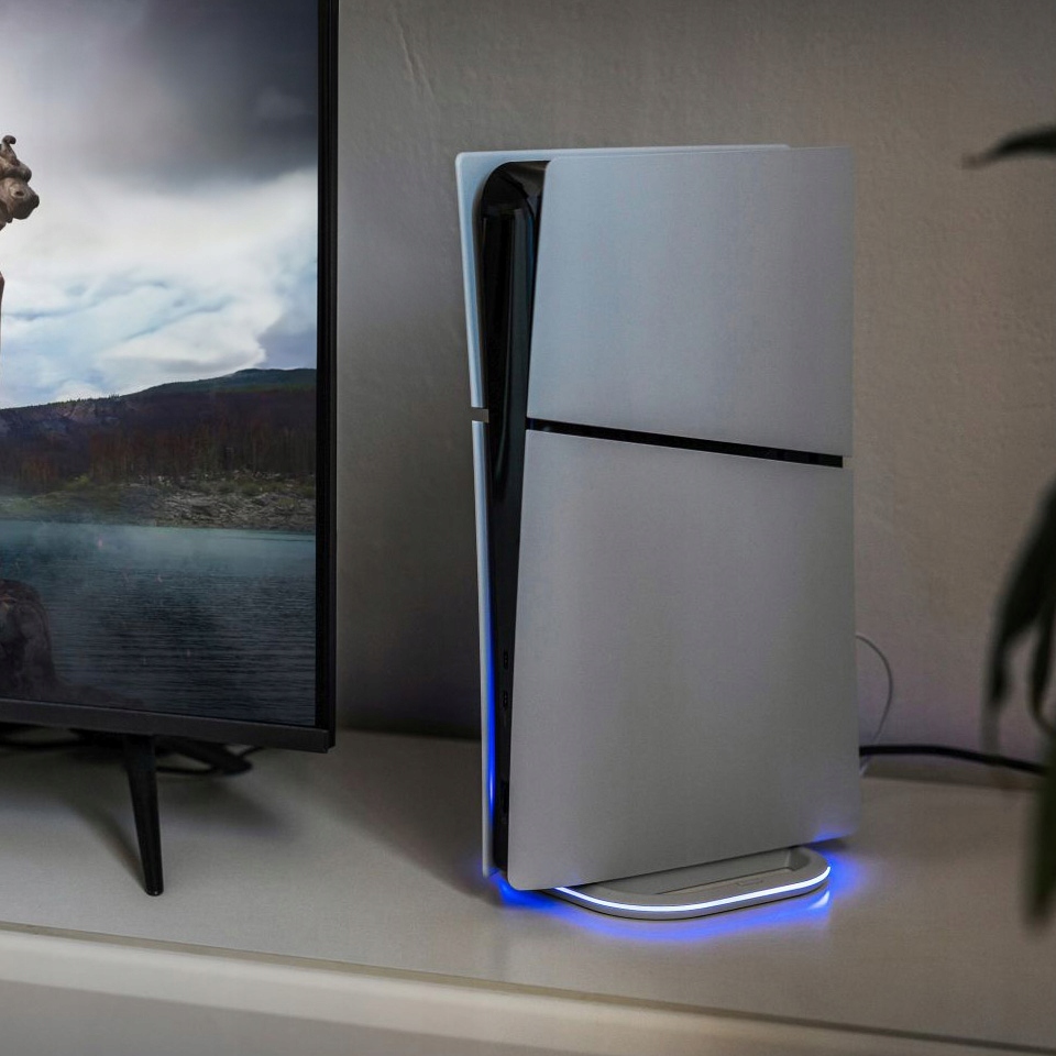 Підставка підтримує як цифрову, так і оптичну версії консолі PlayStation 5. Адаптер, що входить у комплект, полегшує адаптацію до PS5 Slim, забезпечуючи повну сумісність. Це ідеальний аксесуар, який адаптується до ваших потреб, пропонуючи практичність і комфорт.