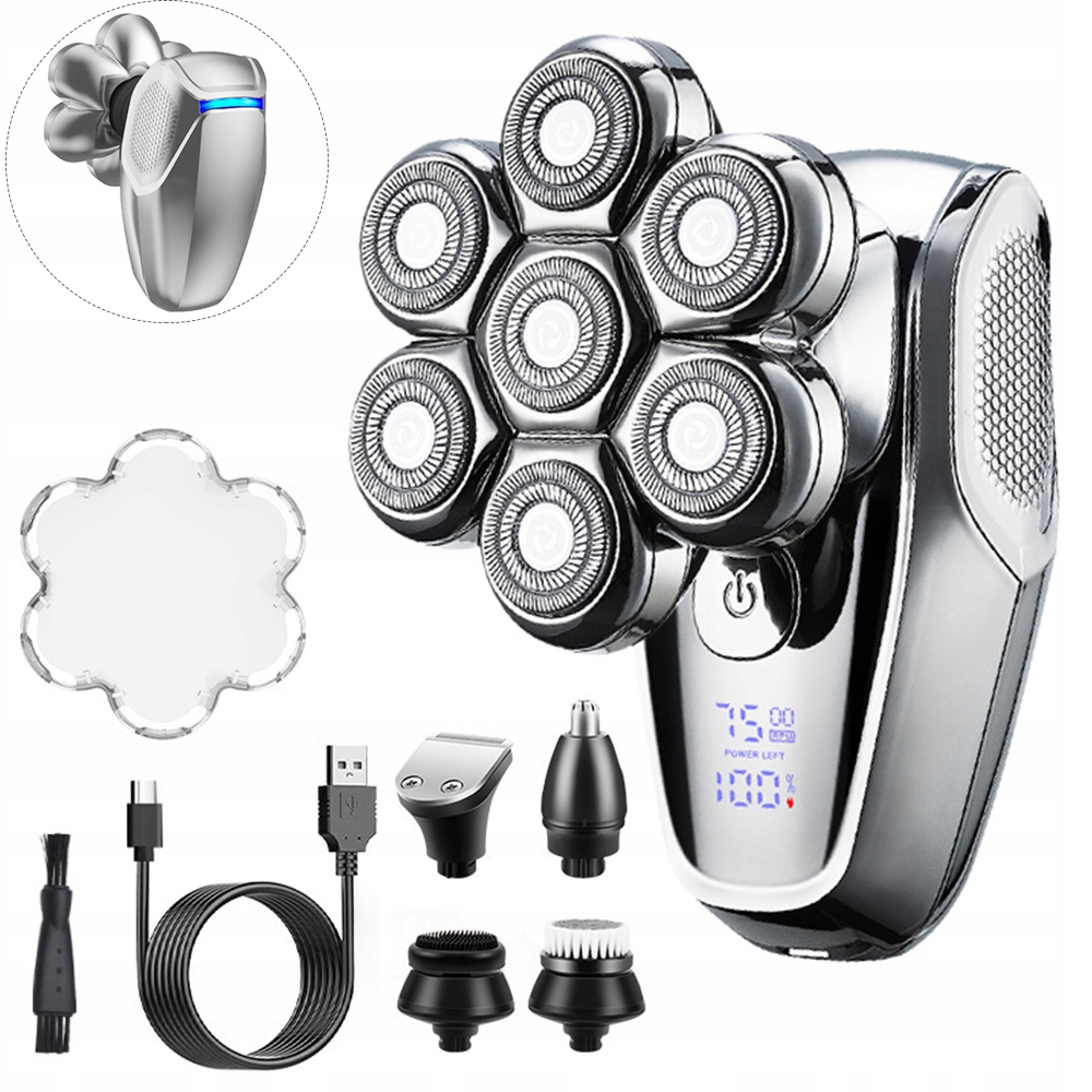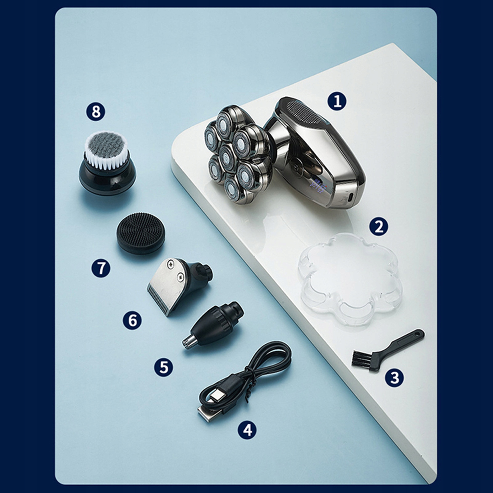 💖Електробритва оснащена плаваючим лезом у 7 напрямках, а надгнучка ротаційна бритва 7D може адаптуватися до різних контурів голови, обличчя, шиї та навіть підборіддя.