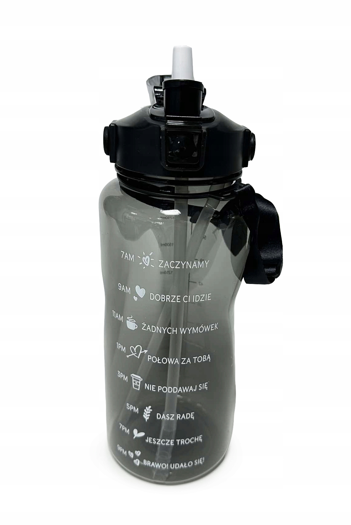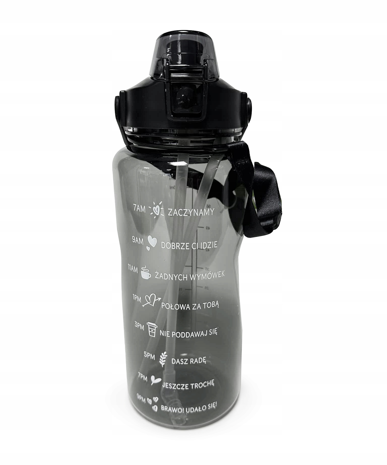Ви можете брати з собою всюди зручну 2-літрову пляшку з мотивуючими написами — на роботу, в університет, під час подорожі.