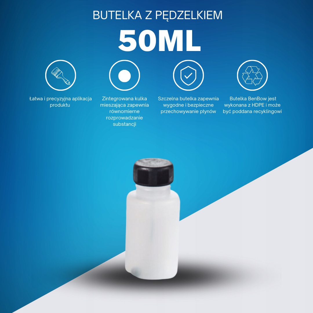 Плакон BENBOW HDPE 50 мл із пензликом і кулькою для змішування для безпечного зберігання та легкого нанесення лаків, клеїв і фарб.