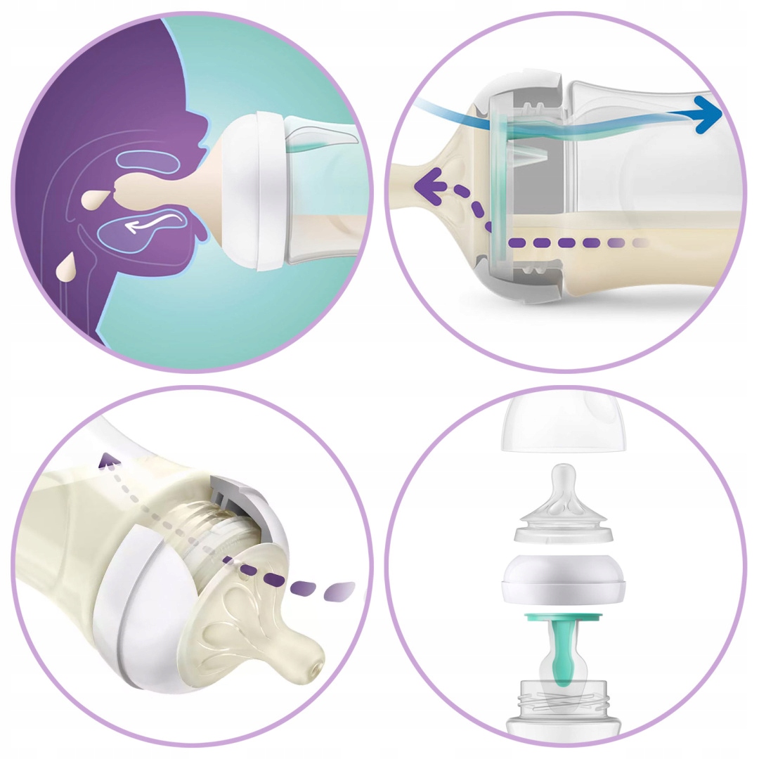 - протиколіковий клапан утримує повітря від животика дитини під час годування, обмежуючи кольки та дискомфорт