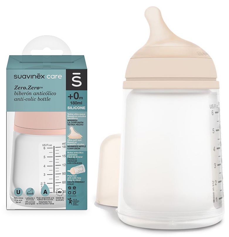 Інноваційні пляшечки Zero Zero мають внутрішній силіконовий мішок. Цей запатентований силіконовий мішечок розтягується під час годування в залежності від того, як дитина смокче, так само, як це відбувається в молочних залозах у годуючої жінки. Ця інноваційна система усуває бульбашки повітря в їжі, тому дитина не заковтує повітря, яке може викликати коліки. Ця система також запобігає окисленню молока та втраті важливих поживних речовин.