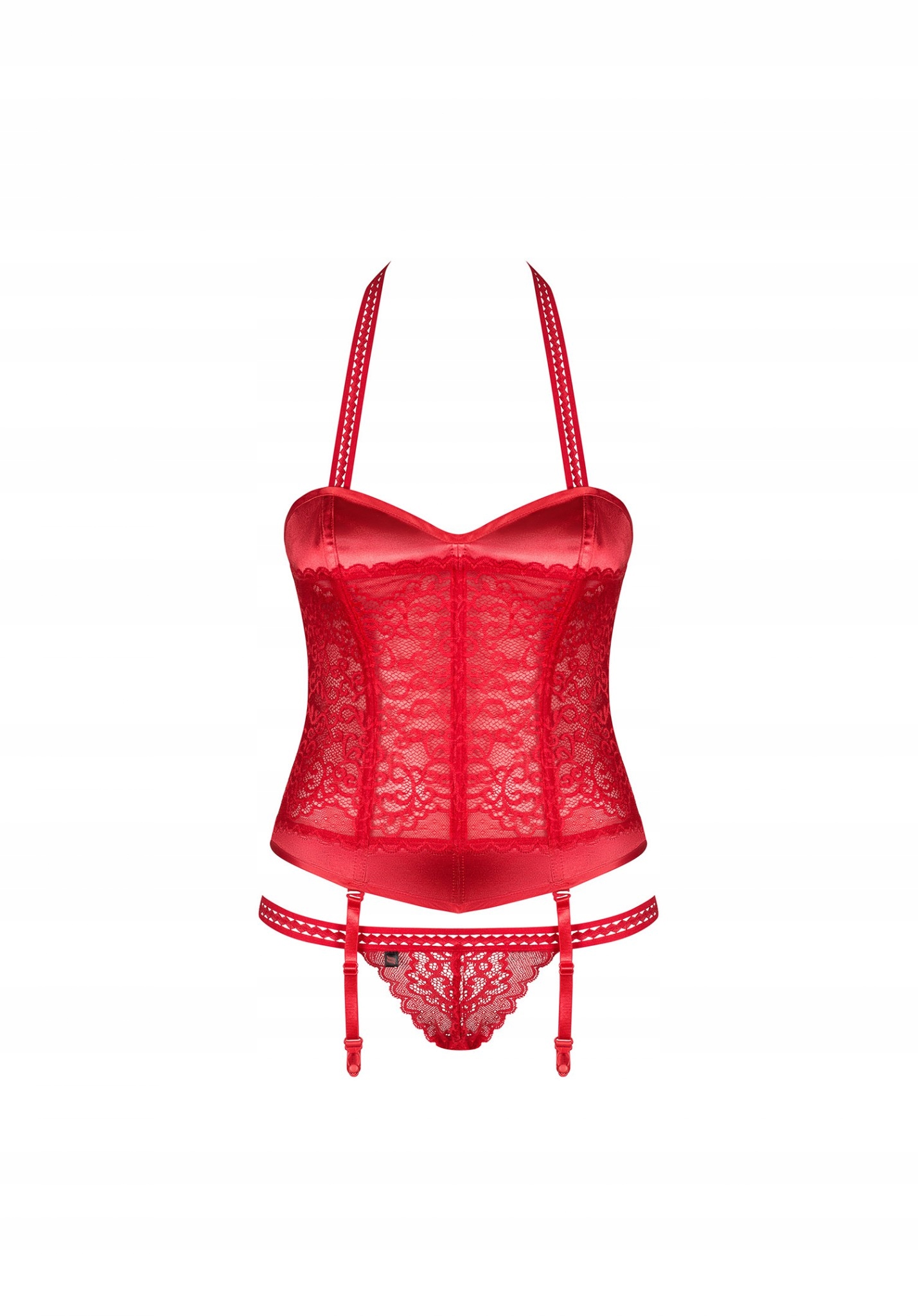 Червоний шнурівковий корсет і стрінги Flameria L/XL від польського бренду Obsessive