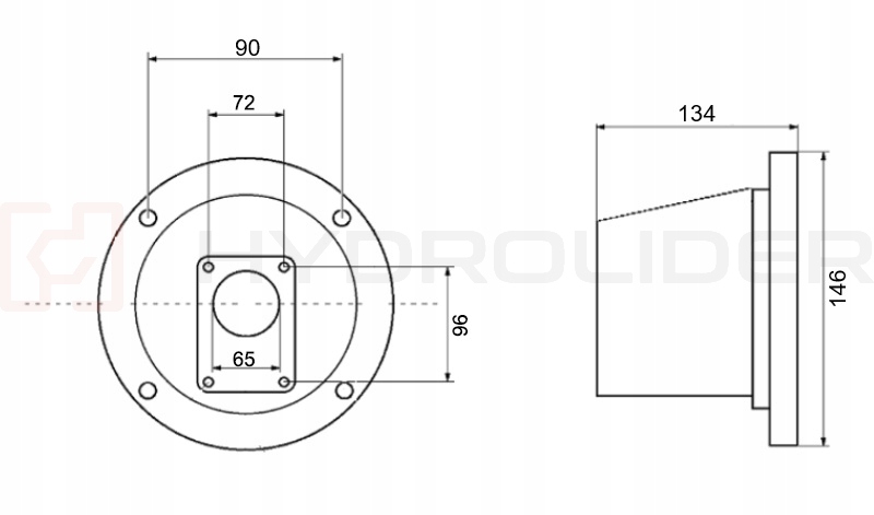 - Діаметр отвору з боку кріплення насоса: 65 мм