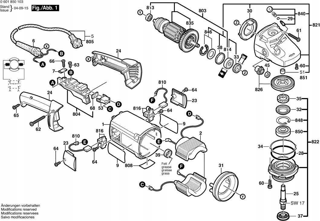 - Позиція на схемі: 822 - GWS 20-230 H (0 601 850 103)