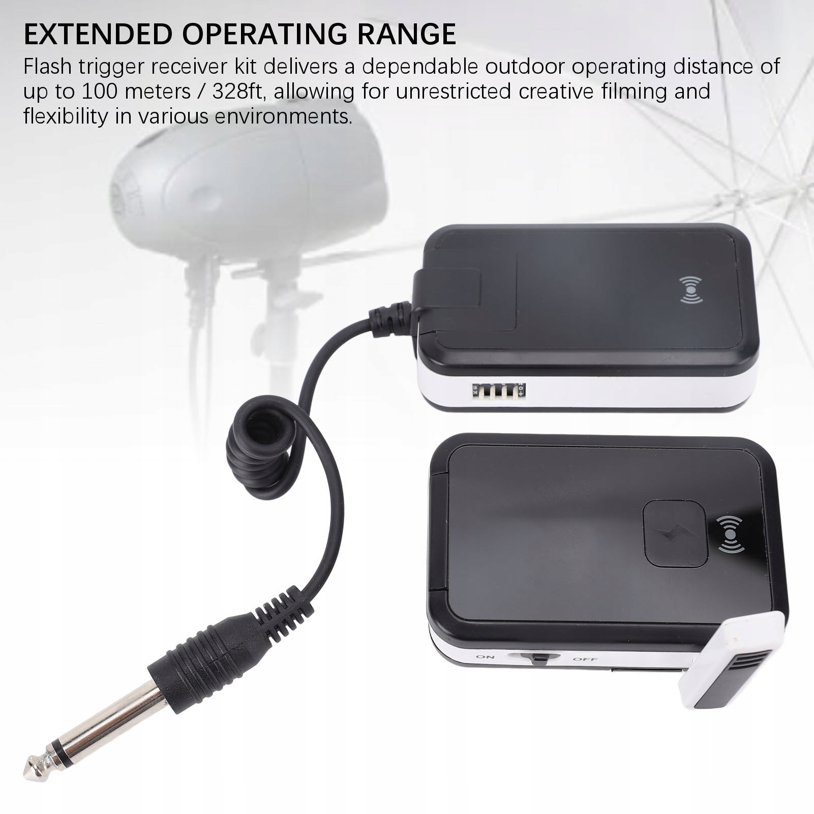 4. Розширений робочий діапазон: Набір спалахів -тригерних приймачів забезпечує надійну відстань роботи поза 100 метрів / 328 футів, що дозволяє необмежено творчі зйомки та гнучкість у різних умовах.