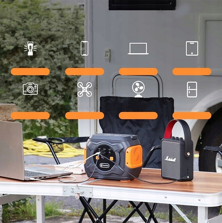 Оснащено 2 портами PURE SINE WAVE AC, 1 портом USB-C потужністю 100 Вт, 2 портами DC, 2 портами USB-A, 1 портом QC3 0.1 . Акумуляторний генератор може живити 9 пристроїв одночасно