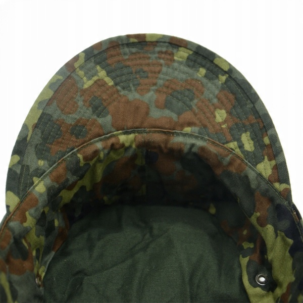 Оригінальна польова кашкет із засобів німецької армії - Бундесверу. Зроблено в лісовому камуфляжі під назвою facktarn. Капелюхи були у вживанні, але в дуже хорошому стані та цілком придатні для використання.