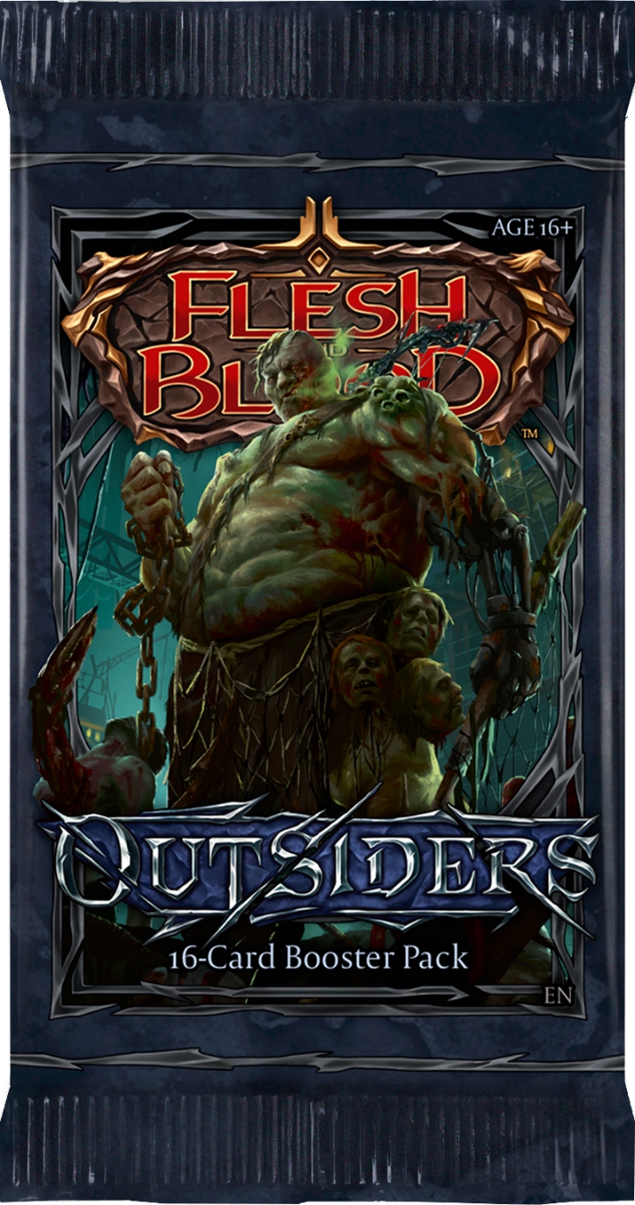 Outsiders — це перший набір Flesh and Blood Draft, у якому є кілька чемпіонів у кожному класі, що робить його найдинамічнішим у форматі драфту! Ви обираєте вбивцю... але ви Аракні чи Узурі? Ви обираєте лучника... але ви Азалія чи Ріптайд? Ви обираєте ніндзя... але ви Кацу чи Бенджі? Кожен герой має власні сильні сторони, стратегії та карткові переваги. Вам знову й знову захочеться наймати сторонніх людей, щоб досліджувати глибини Безодні!