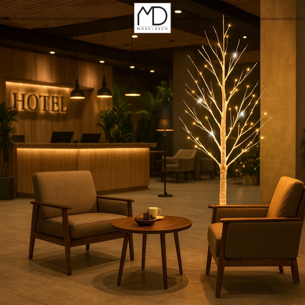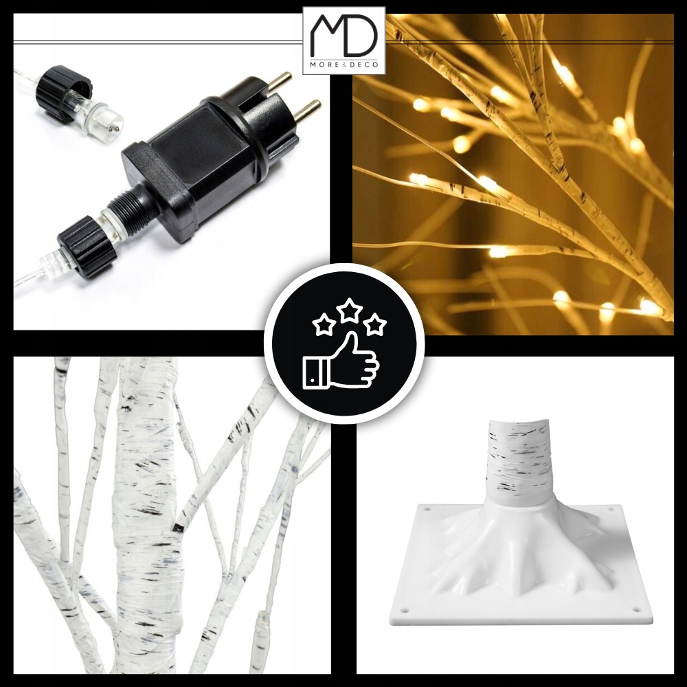 Наша світлодіодна берізка привнесе у ваш дім гармонійну гру світла! Він оснащений делікатним, теплим освітленням, яке становить 80% усіх світильників, що надає інтер'єру затишку, святкового сяйва. Для привабливого контрасту 20% світла складають холодні білі світлодіоди в режимі спалаху, які делікатно освітлюють простір, створюючи чарівний ефект мерехтіння зірок. Завдяки цій суміші світла світлодіодна береза випромінює елегантність, яка ідеально доповнить як внутрішні, так і зовнішні простори.