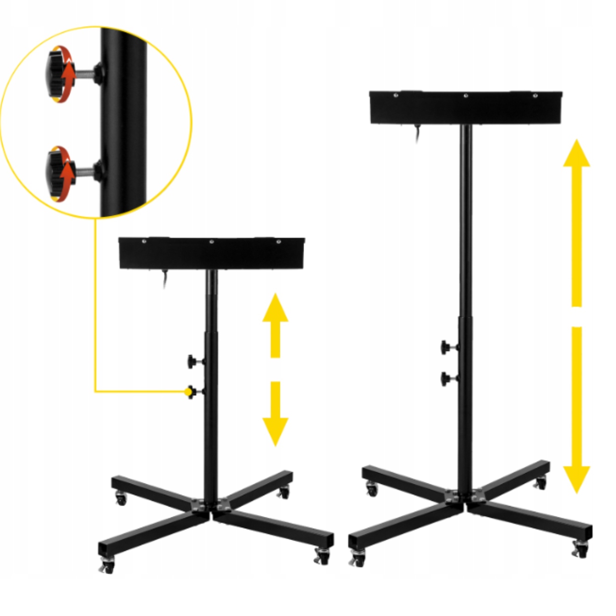 РЕГУЛЬОВАНА ВИСОТА - Можливість регулювати висоту за допомогою ручки дозволяє вам адаптувати сушарку до різних вимог і видів робіт. Діапазон регулювання в діапазоні від 80 до 120 см забезпечує гнучкість у роботі з різними розмірами та типами відбитків.