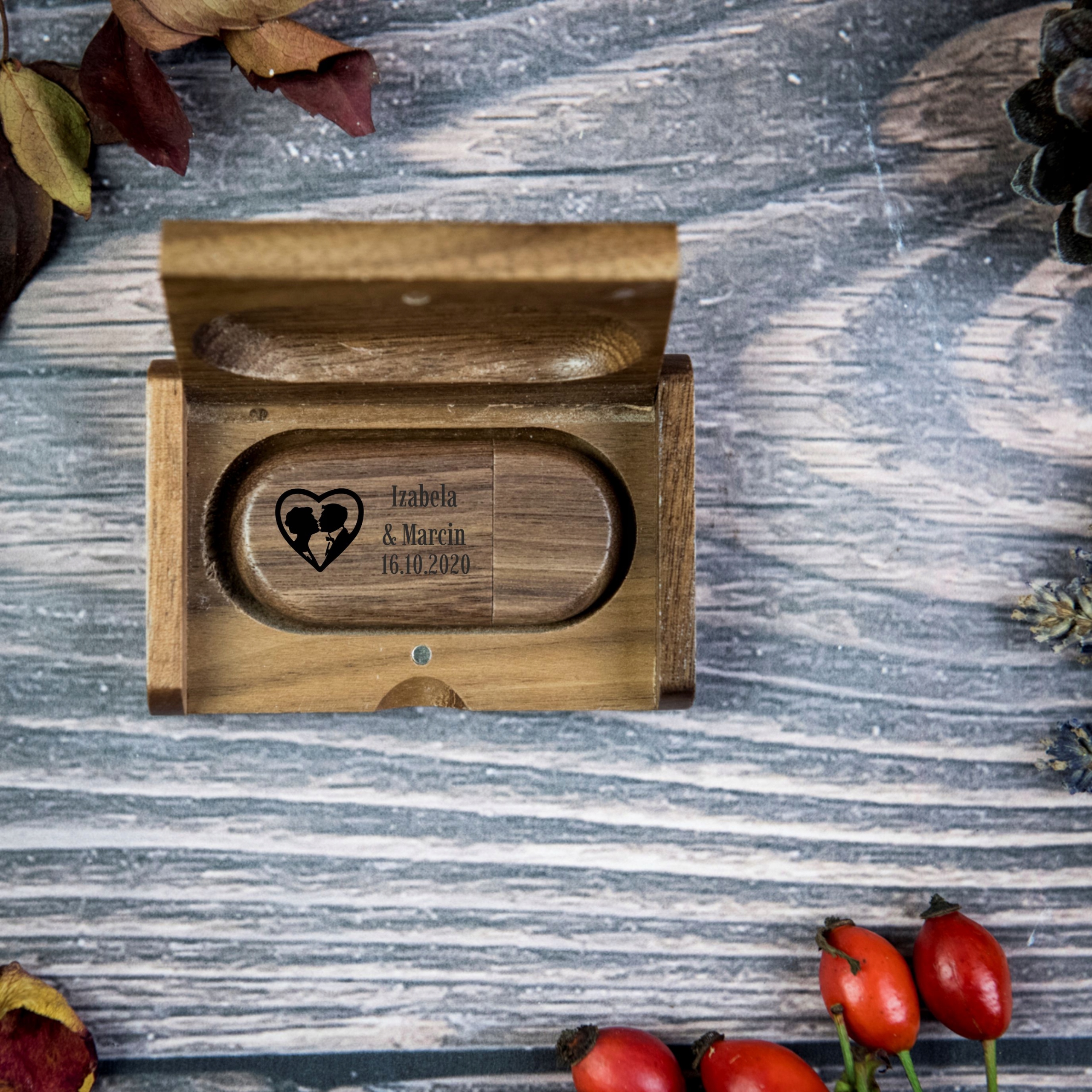 Дерев'яна флешка ємністю 64 ГБ, USB 2.0 + коробка + ВЕСІЛЬНА ГРАВІЮВКА