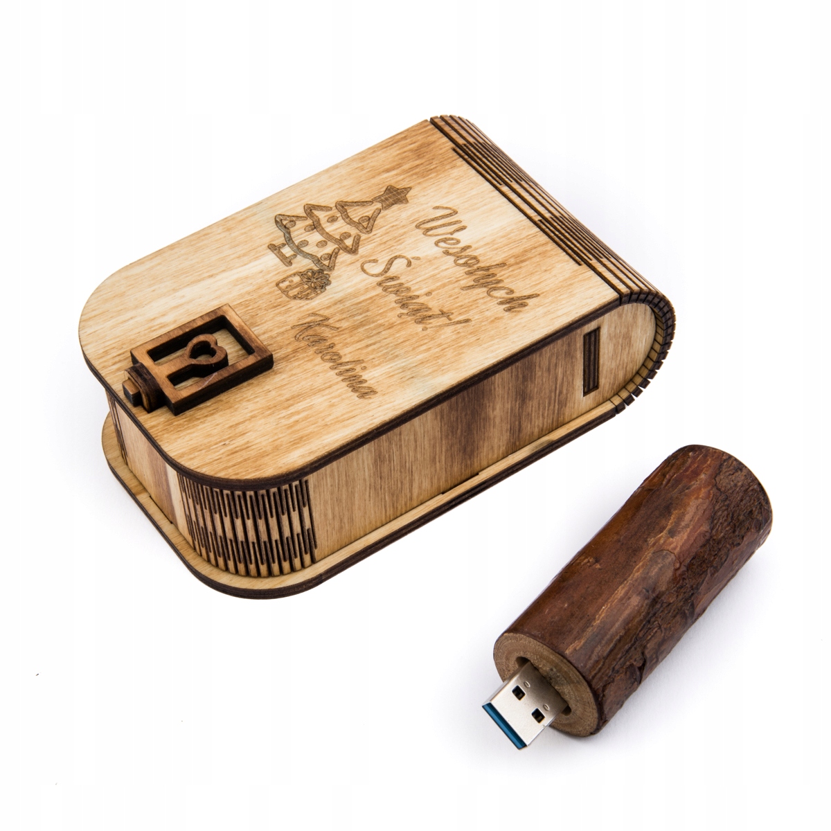 Флешка дерев'яна 128 гб на Різдво + коробка + гравірування