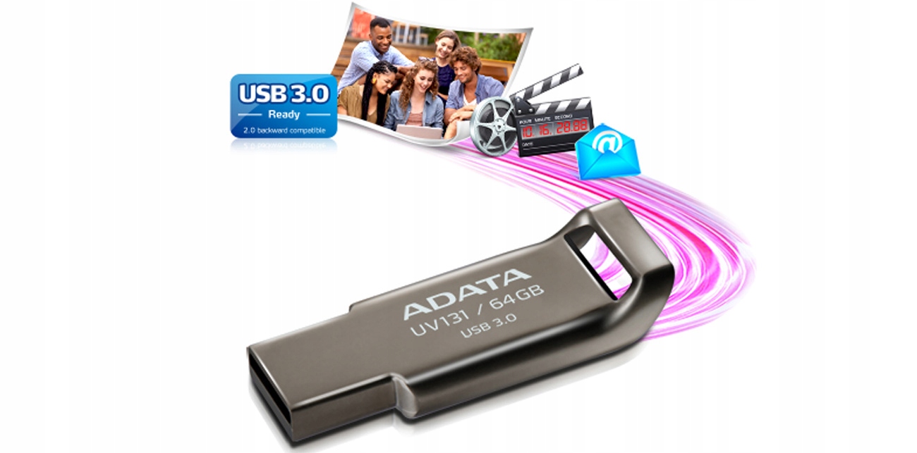 ADATA UV131 оснащений надшвидким інтерфейсом USB 3.0, який також сумісний зі старими пристроями з USB 2.0. Він забезпечує швидкий доступ до даних, тому вам не доведеться турбуватися про повільну передачу великої кількості файлів.