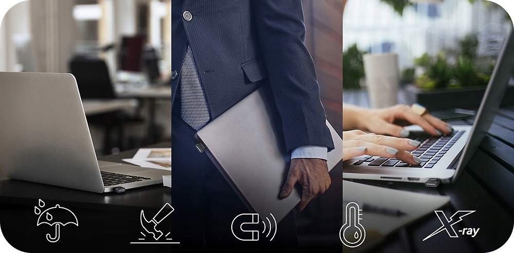 Де б ви не були, ваші файли залишаються в безпеці. Експертиза Samsung у сфері USB-накопичувачів робить Bar Plus флеш-накопичувачем, де ви можете без жодних турбот зберігати свої цінні дані. Ідеальний захист забезпечує корпус, стійкий до води*, ударів**, температури***, магніту**** та рентгенівського випромінювання*****