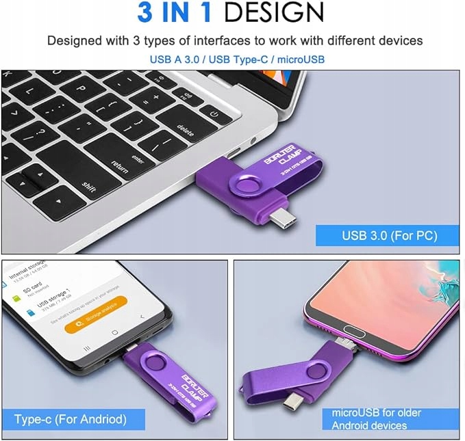 - 【Флеш-накопичувач 3-в-1】Звільніть пам’ять телефону та забезпечте додатковий простір для зберігання даних для мобільного пристрою. Завдяки порту USB 3.0 і високошвидкісному мікросхемі великої ємності для швидкої передачі даних ви можете легко створювати резервні копії фотографій і відео зі свого телефону та комп’ютера. Він має відмінну сумісність і сумісний з більшістю телефонів Android. Зверніть увагу, що він не призначений для iPhone.