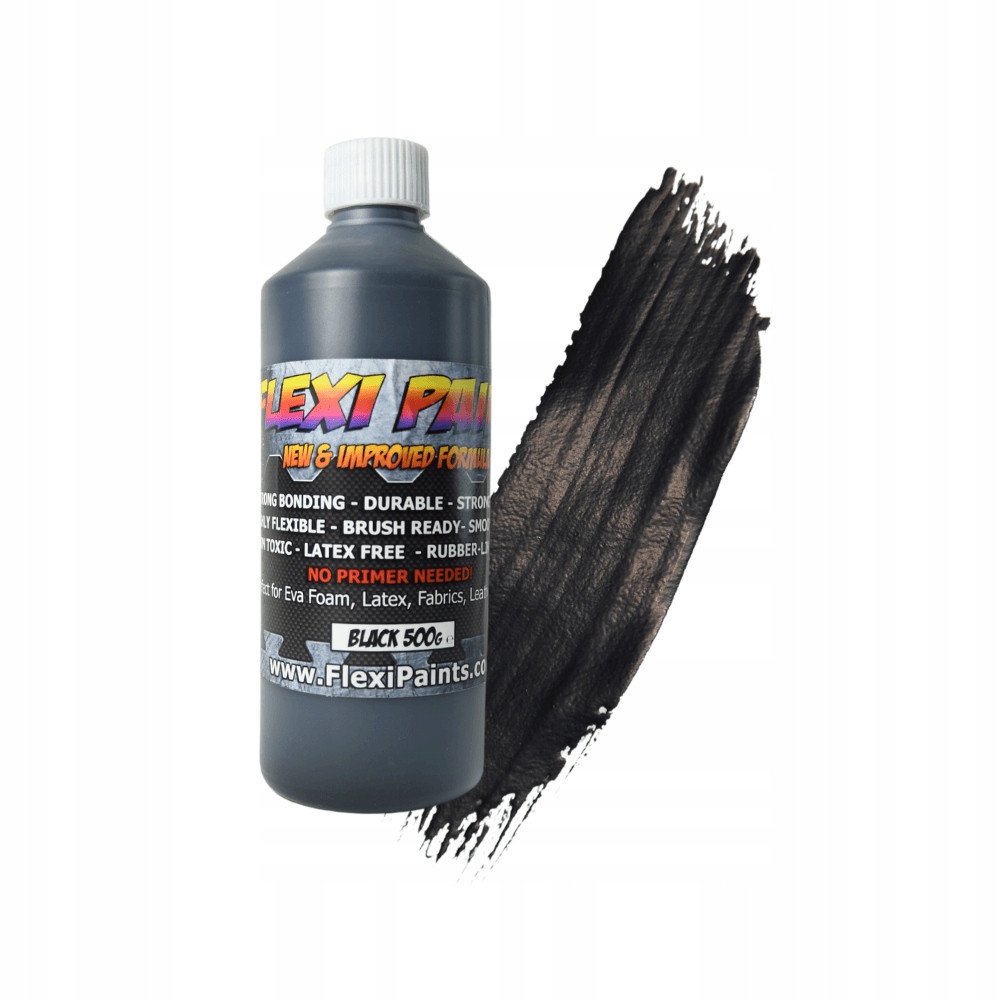 Завдяки липкій консистенції він міцно прилипає до матеріалу. Він більш міцний і гнучкий, ніж акрилові фарби. Випробування виробника показали, що фарби Flexi Paint можна використовувати для фарбування піни EVA, пластазоту, піни для оббивки, латексу, тканин і м’якої поліуретанової піни.