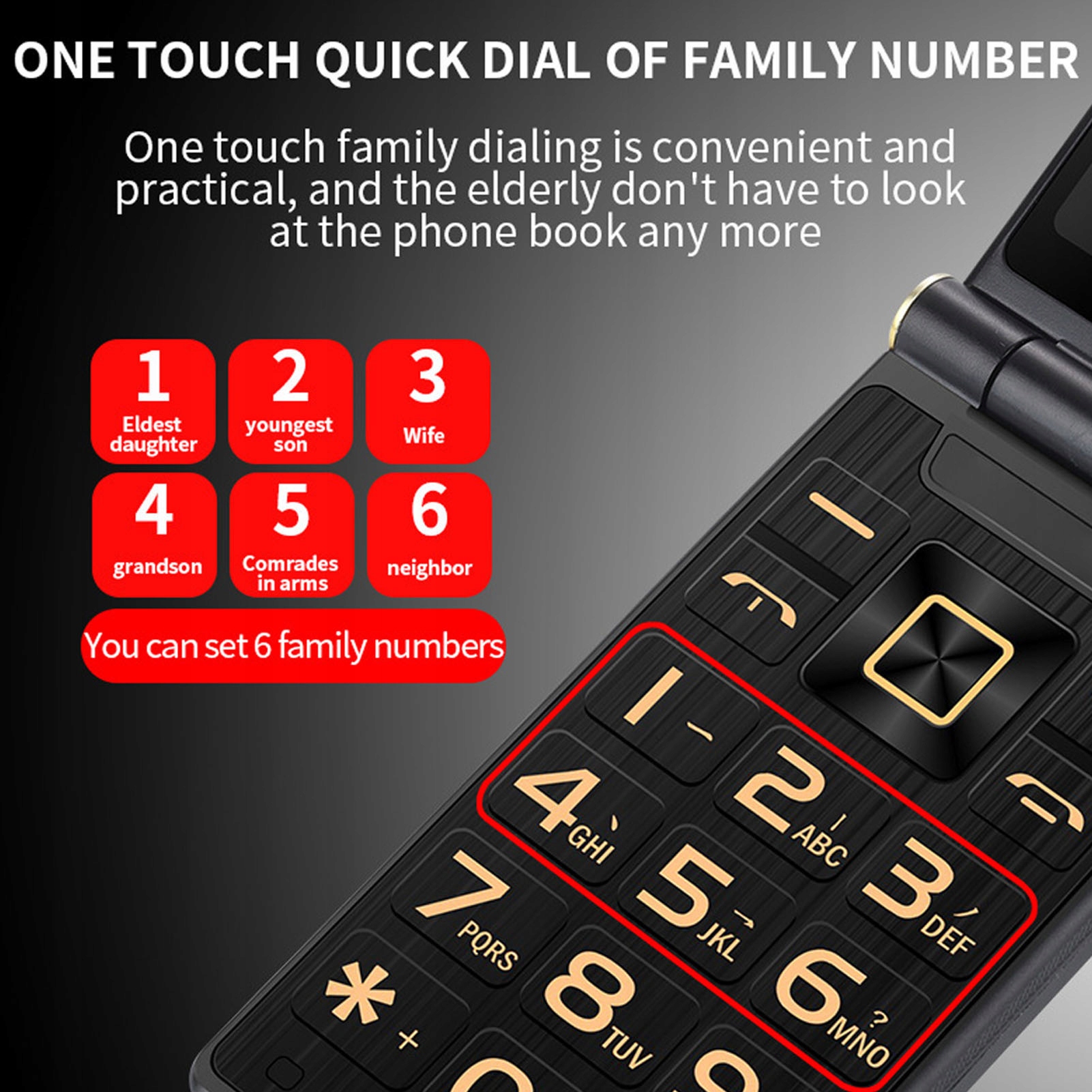 5. Вбудований світлодіодний ліхтарик: містить інтегрований світлодіодний ліхтарик з вдосконаленою яскравістю та діапазоном, цей Flip Phone покращує безпеку вночі для людей похилого віку та забезпечує мир для ваших близьких.